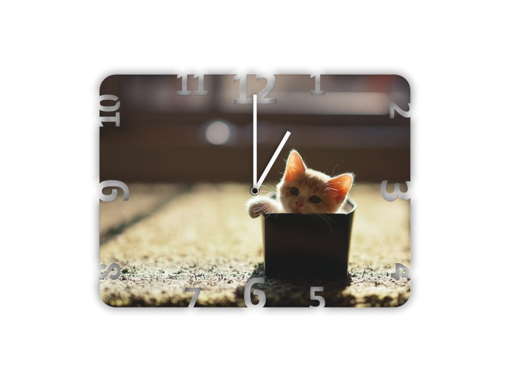 Hodiny s motivem kotě v krabici - P12017-WLC1003-03W
