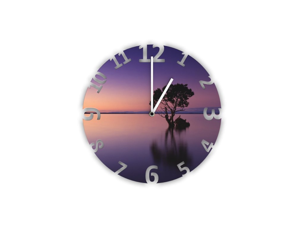 Moderní nástěnné hodiny české výroby s obrazovým fotomotivem. Laserem vyřezávaný ciferník z akrylátového skla. Ultra tichý QUARTZ.