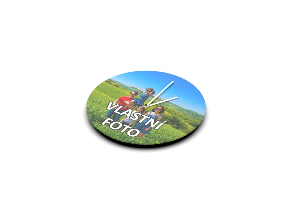 Nástěnné hodiny české výroby s vlastní fotografií. Laserem vyřezávaný ciferník z akrylátového skla. Ultra tichý QUARTZ strojek se dvěma sadami hodinových ručiček (černé a bílé).